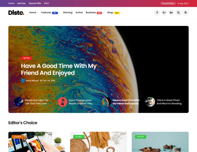 Disto is a colorful WordPress theme that fits well for any blog as well as manazine like websites.