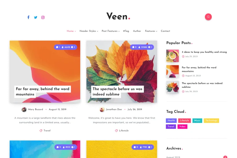 The theme comes with 9 ready homepages that you can choose from, highly customizable header and footer, multiple post layouts, shop, vudeo support, social integrations and so much more.