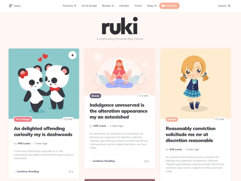 Ruki is a sweet, colorful and masonry WordPress Blogs theme with an abundance of options.